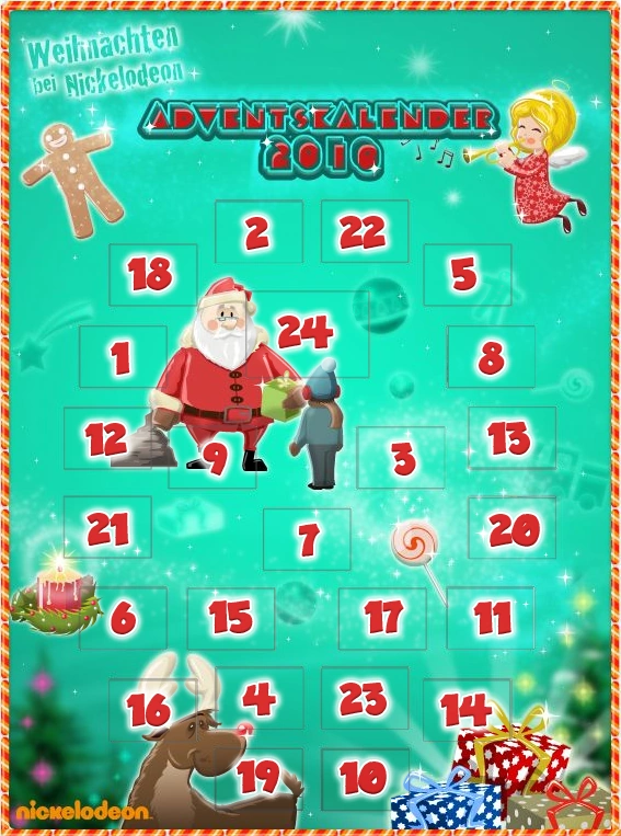 Auch 2010 gab's wieder den nick.de Adventskalender vom 1. bis zum 24. Dezember auf nick.de, den es 2008 sowie 2009 auch schon gab.