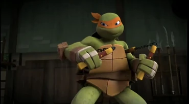 In this story, Rubble, Charger, Wheeler, and Mix collaborate with the Teenage Mutant Ninja Turtles to construct a Renaissance-themed dojo (the turtles were named after Italian Renaissance artists). But there's just one problem: they can't get anything done because Raphael's short temper keeps causing delays in the work.