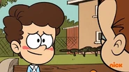 Dia memiliki kulit putih dan rambut keriting coklat gelap. Dia mengenakan kemeja kancing biru dan putih dua-nada, jins abu-abu gelap, dan sepatu kets putih.
