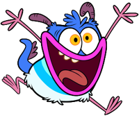 Bunsen is a blue monster, with a square shaped body. He has a blue head, a light blue stripe on his chest, a turquoise stripe on his stomach, and has white fur on his underparts. He also has a large pink mouth and an overbite. Bunsen has pink arms and legs. He has a tuff of hair on his head, which is the headspout he eats and sometimes drinks from. He has two short purple horns on his head which are prehensile, and large yellow eyes. He has a short blue tail with 3 purple spikes on it.