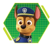 Like all PAW Patrol members, Chase has his own personalized pup tag which he uses to make calls to Ryder, The Lookout, and the other pups, as well as make video calls to said members. His is customized with a blue background and a shape of a star badge on it to represent his job as a police officer.