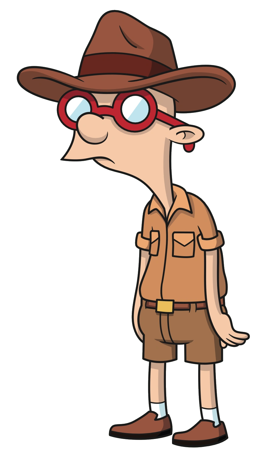 In Hey Arnold! The Jungle Movie, Curly is one of a handful of characters not to get a wardrobe overhaul. However, the shaved spot on the back of his head is more visible, and he now has small red Converse Sneakers with white socks.