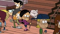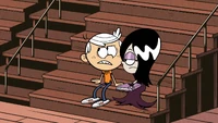 As Lincoln attempts to leave while keeping hidden from Ronnie Anne, he eventually bumps into the four girls. They are initially mad at him for running out on them, but they admit that they've been having a great time with his friends and tell him that they're going to spend the rest of the dance with them instead. Then, just as Lincoln thinks he's out of trouble, Ronnie Anne comes up behind him, forcing him to apologize for avoiding her. However, it turns out that Ronnie Anne never really wanted to go to the dance and was actually going to invite him to the arcade. As the dance draws to a close with Lincoln's friends slow-dancing with their respective partners, Lincoln and Ronnie Anne go to the arcade.
