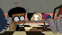 At the dance, Lincoln, with help from Clyde, manages to find equal time with each of his four dates - Tabby, an aspiring musician who is Luna's friend; Giggles, a friend of Luan's who attends clown school; Haiku, Lucy's friend and fellow Morticians Club member who is a poet; and Polly Pain, one of Lynn's roller derby teammates. However, things becomes problematic when Ronnie Anne unexpectedly arrives. Lincoln goes back into hiding, getting Clyde, Liam, Rusty, and Zach to cover for him for Haiku, Tabby, Polly, and Giggles, respectively.