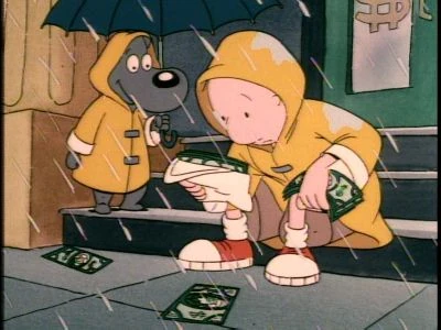 | Doug is impressed by Mr. Bluff's gifts to Beebe. Mr. Funnie feels pressured to make more money for a better birthday present for his son, so he decides to start his own photography store. At first, Doug is excited by the thought of more money, but when he sees the effects on his father and their family, he realizes that money can't buy happiness. | |||