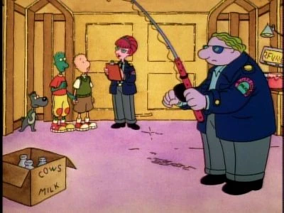 | Doug's Bluff Scout Troop #617 has to raise money for new canoes, so they sell "Bluff Scout Booster Bars" door to door. But after being rejected by everyone, Roger offers a new way to sell the bars, which Doug doesn't agree with. Then when Doug sells a bar to Mr. Swirly, he realizes the problem of why the bars taste so horrible. | |||