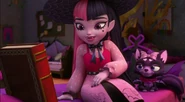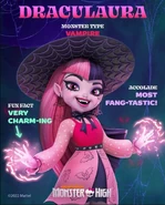 Draculaura the daughter of Count Dracula is smart, chic, confident and gliding through un-life -or so it seems. Beneath her perfect exterior lies a big secret. She wants to be a witch!