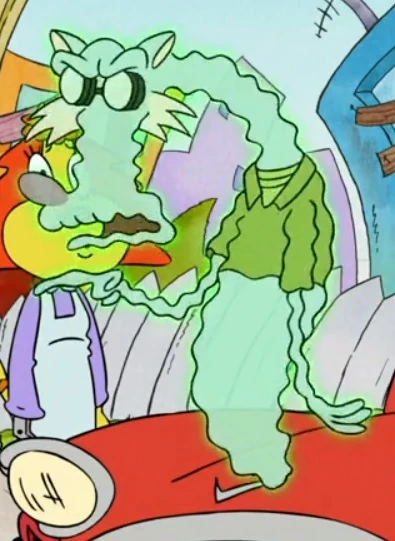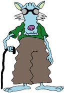 Hiram William Wolfe is Heffer Wolfe's adoptive-grandfather from George's side of the family. While he is undoubtedly very old, his exact age is never revealed, he was said in his prime some time in the 1940s or 1950s, according to the second-season episode "Cruisin'". This would put him somewhere between 80 and 90 years old. His eyesight, co-ordination, and bladder control are all suffering, and he cannot chew solid food. He relies on his walking stick or wheelchair to get around. He has a hatred of wallabies and acts hostile towards Rocko, but due to his incredibly poor eyesight he mistakenly believes that Rocko is a beaver (despite that Heffer lied to him that Rocko is a coyote). He was also in love with Winfred Wolfe when he attended Ozark Tech. In Static Cling, he returns as a ghost with no legs. He was voiced by Charlie Adler.
