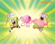 Jellyfish are gelatinous, free-swimming creatures in SpongeBob SquarePants, common throughout all oceans of the world. These Bikini Bottomites of Jellyfish Fields can have between one and eight spots and appear in hives much like bees and can sting like them, too. However, unlike bees, they have electric tentacles to zap intruders (similar to electric eels) instead of unelectric stingers to sting intruders. They make jelly, in a similarity to bees making honey. Jellyfish have been a big role in making jelly. The sport of catching jellyfish with hand nets is referred to as "jellyfishing" and is a popular activity for many enthusiasts such as Spongebob and Patrick.
