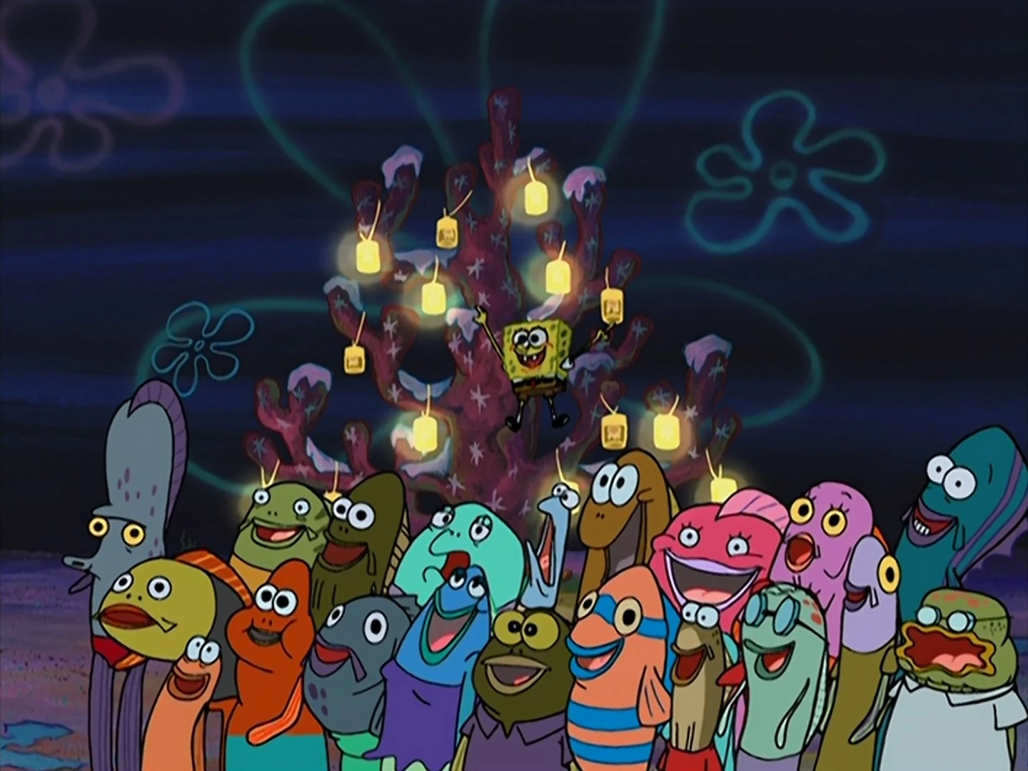 At the very beginning of "Christmas Who?", Patchy the Pirate is heard singing to the tune of "Jingle Bells". Then, at the start of the main story, Sandy is humming the song as she decorates her tree for Christmas. Later, SpongeBob leads the people of Bikini Bottom in chanting "Santa's coming tonight" to the tune of "Jingle Bells".