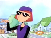 Judy Funnie is the older sister of Doug Funnie. She's often seen with a flair for the (overly) dramatic, usually seen wearing only purple and black, and rarely takes off her beret nor her sunglasses.