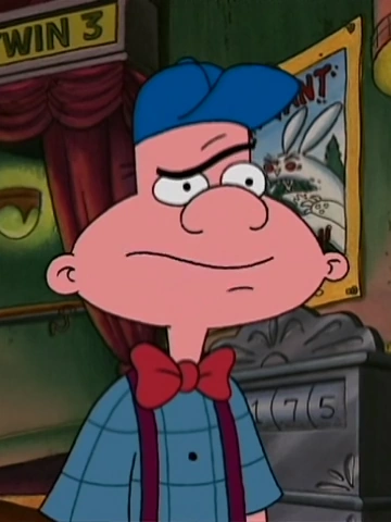 In "Gerald's Game", he is one of the players and Gerald's subjects. In "Chocolate Boy", he follows Chocolate Boy to ensure the deal with Wolfgang is not broken. He makes a brief cameo at Blockapalooza in Hey Arnold!: The Movie. |