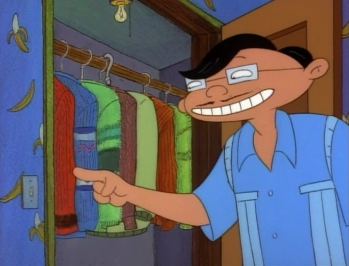 His only speaking role is as a member of the "Dork Parade" (along with Sheena and Brainy) at the start of "Eugene's Bike". He has an "albino worm" collection (which are presumably maggots), although every now and then one finds its way underneath squished on the bottom of Helga's shoes. He also had a cameo in "Mugged" where he got scared by Arnold. |