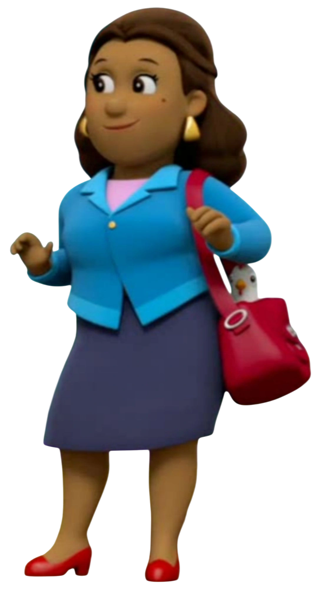 Mayor Goodway wears a dark blue skirt, a blue blazer, a pink camisole (white in Season 1), red high heel shoes (blue in Season 1), and golden earrings. She has dark-colored skin, pretty brown eyes, and long wavy hair, and a small beauty mark on her face.