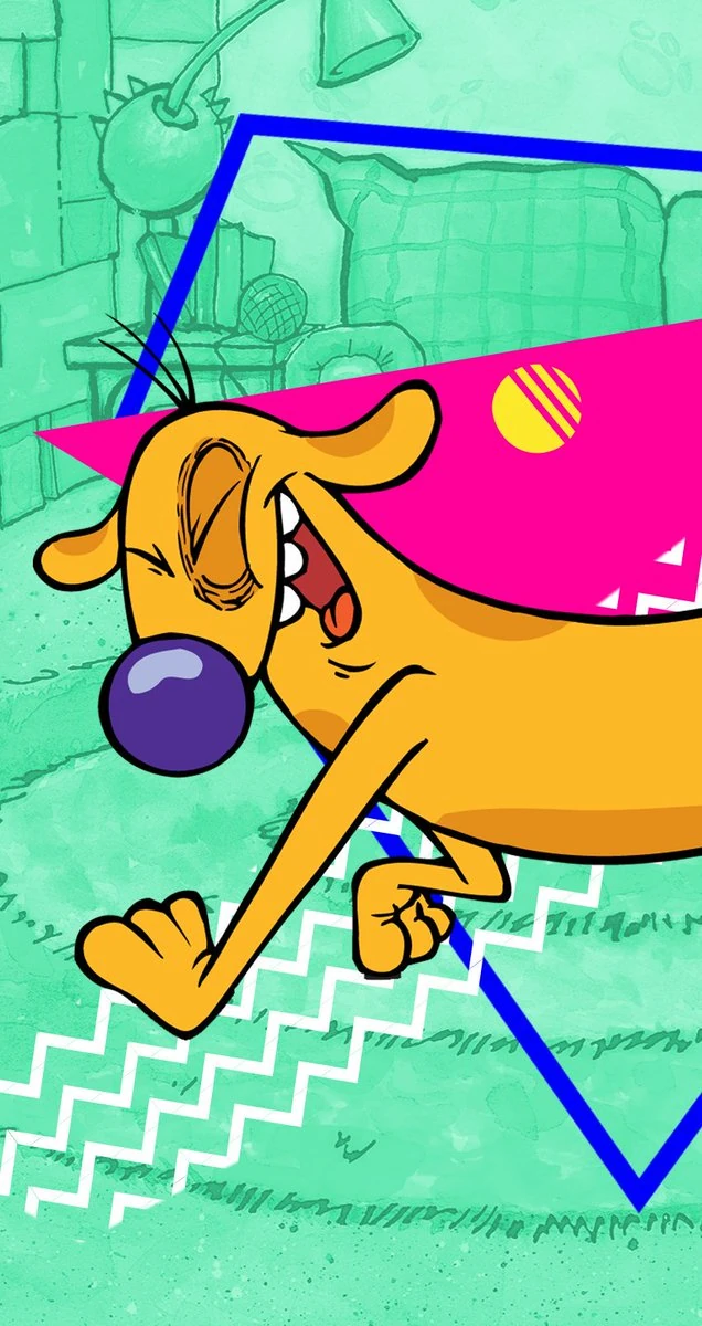Dog (voiced by Tom Kenny) is the more happy-go-lucky and more naïve of the two. He is also the source of clumsiness. He is extremely ambitious when Cat or any other character convinces him to take on a task, diving right into it with full force and energy. Dog is the typical loyal "dumb dog" and is easily convinced. He will believe everything he is told. His attention span is very short and he is easily distracted by balls, garbage trucks, bones, food, and his overactive imagination. Because of his dysfunctional brain, Dog usually is the one who gets the pair into trouble. Not paying attention to Cat's warnings, his actions almost always end up with some severe consequences. Despite this, in many of the episodes, it is shown that Dog is usually the one that is more popular and athletic of the two, such as the episode when Cat and Dog both went back to school to complete Cat's last day of High School. Like Cat, Dog adores his brother and looks up to him no matter how many times Cat steers him into danger. Dog is the typical animal. He is often distracted with chasing shadows and chasing after tennis balls, and loves eating garbage. Much to Cat's dismay, he leaves a mess everywhere he goes. According to the series finale, Dog remembers what their parents were like (ex.: "Mom's four eyes; Dad's slimy green skin.") He is also 26. Dog's catchphrase is "HI HO DIGGETY.", and he usually says this when he is excited about something.