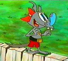 Winslow (voiced by Carlos Alazraqui) lives in CatDog's house in the hole in the wall. Despite his rat-like appearance and behavior, he is actually a mouse. Winslow speaks with a typical Brooklyn accent. Winslow is always full of wisecracks about anything and everything. He's very sneaky and underhanded with CatDog, especially with Cat. Winslow and Cat do not get along at all, because he's always getting Cat in trouble. However, it was eventually revealed that Winslow may be afraid of Cat. Dog, however, doesn't mind Winslow and is friendly with him. Deep down, he has a very big heart and loves CatDog and at some point act as CatDog's conscience and guidance of living in society, but acts out against them because he is jealous of how close they are. When he laughs, he goes "Heh Heh". His catchphrase is "Whatta you, nuts?".