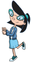 Phoebe has a huge bun of black hair at the top of her head bound by a small yellow scrunchie, and wears large cat-eye glasses with blue monochromatic lenses, a blue sweater that is too long for her (which covers what she's wearing for a bottom) and matching shoes. Phoebe's of short stature, and has a squeaky voice (though it was less squeaky in the earlier episodes).