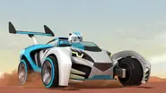Rory rides a white, black and light blue white tiger-themed car that possesses similar tiger-like pouncing abilities as hers. It has retractable claws on the front tires and an extended tail with a spoiler at the end.