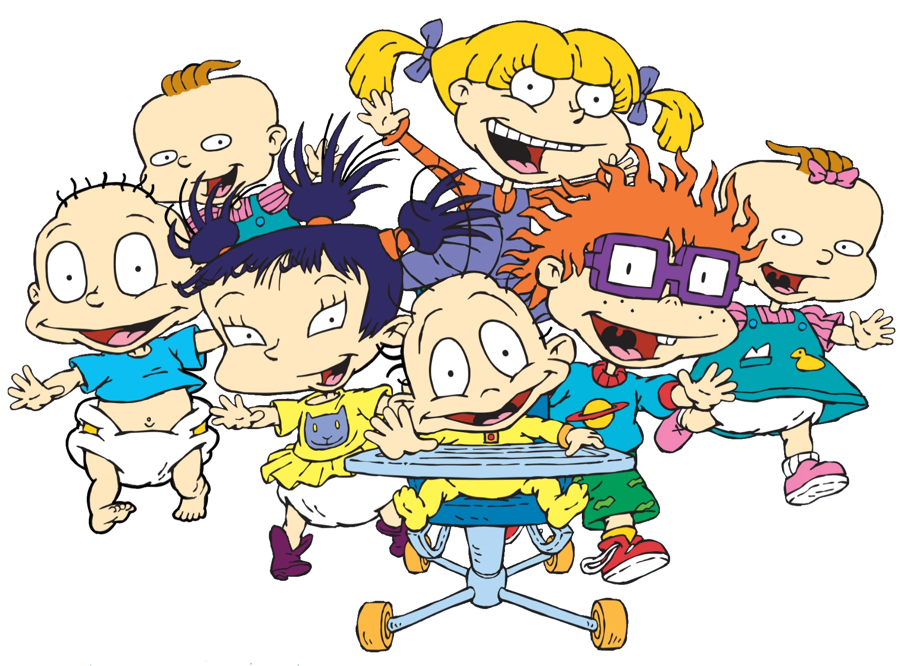 The original main characters, clockwise from left to right: Chuckie, Lil, Phil, Angelica, and Tommy.
