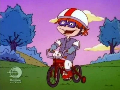 | Chuckie is nervous about riding his new two-wheeled "big boy" bicycle. | |||