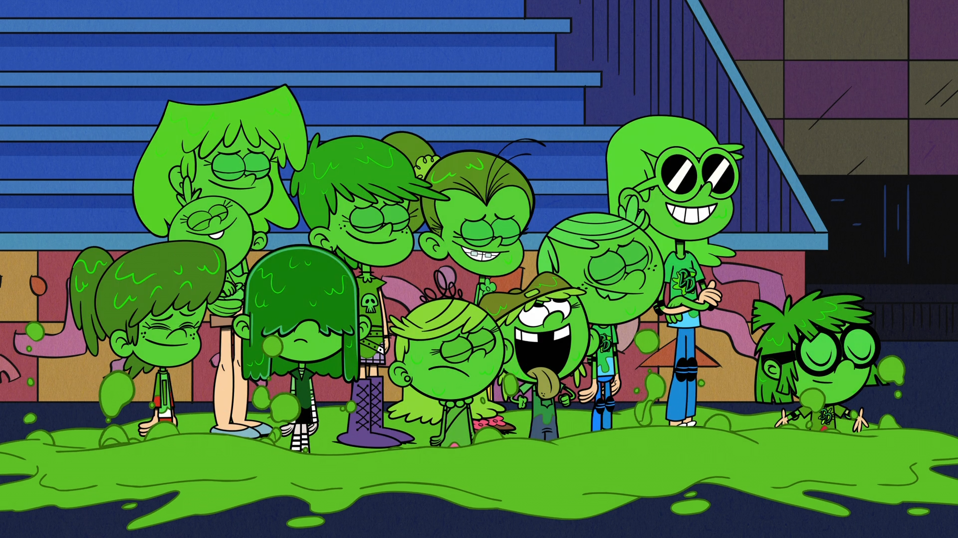 The Loud siblings get slimed at the end of "How Double Dare You!"