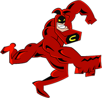 The Crimson Chin is Timmy Turner's favorite superhero in The Fairly OddParents, voiced by former late night talk show host Jay Leno. He is the superhero identity of Charles Hampton Indigo, a late night talk show host who was bitten by a radioactive actor and got chin powers to defend people. The Chin takes the responsibility of protecting the city of Chincinatti, taking the secret identity of Charles Hampton Indigo for the local newspaper, The Daily Blabbity. Timmy works as his sidekick, "Cleft, the Boy Chin Wonder".