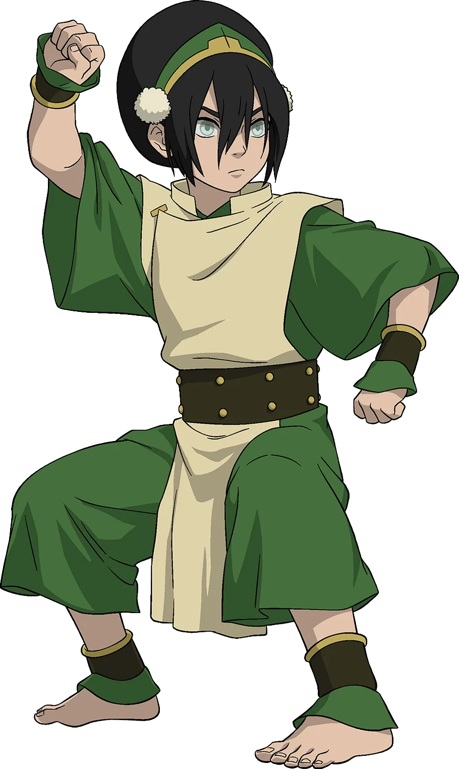 As a tomboy, Toph brings a totally new personality to the group. Unlike the nurturing Katara, flighty Aang, or gruff but goofy Sokka, Toph is fiercely independent, sarcastic, direct, brutally frank, and confrontational; the choleric of the group. She appears to have the same carefree and adventurous personality as Aang, and she is very tomboyish in the way she acts and dresses very differently than the way she presents herself to her parents. However, unlike Aang, who avoids fighting whenever possible, Toph loves battling and takes great pride in her earthbending skills.