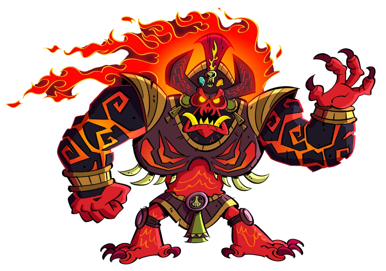 Ucumu is the evil god of underworld who holds nothing back in terms of causing mayhem and destruction. He appears to be somewhat self-conscious about his looks, as he freaked out when the flames on his body were extinguished, revealing his skeletal structure.