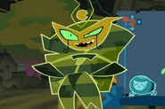 Following the events of "Escape from Cluster Prime", Vexus' appearance changed to a more deteriorated and damaged form. In "Trash Talk", her color pattern changed to a darker tone (matching the atmosphere of the asteroid). In "Queen Bee", Vexus gained a new, slightly altered appearance. Her large antennae and sleeves were reduced in size, and the shape of her headdress changed. She also donned some sort of green corset that covered her belly, and her antennae became more aligned with the orb on her head.
