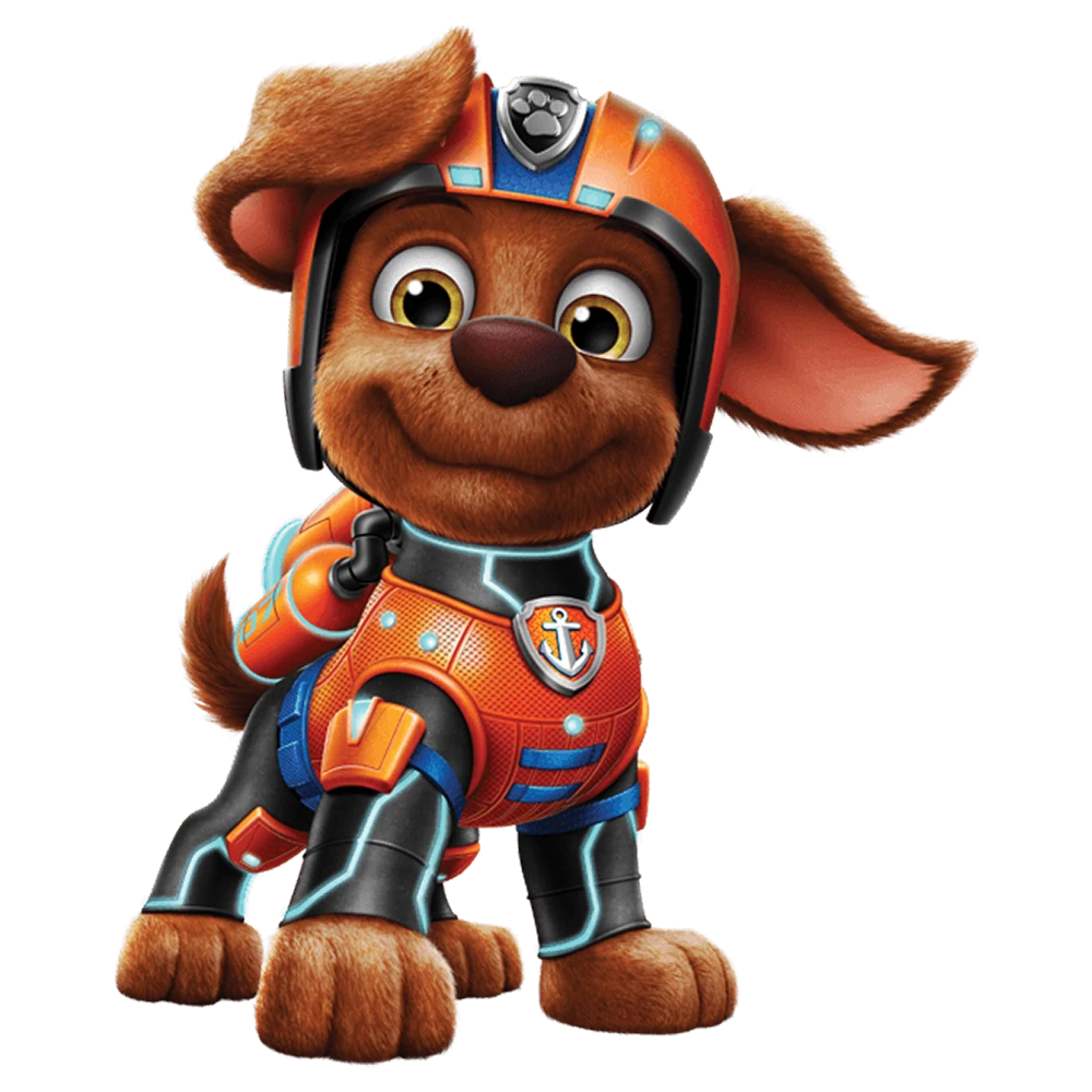 Zuma is a chocolate Labrador retriever puppy, with a slight speech impediment where he can't pronounce his R's correctly, though he loses it after the third season. His main duties, as a PAW Patrol member, is anything aquatic (anything that's related to water). His main color is bright orange, given that he normally wears an orange helmet on duty, his jacket and pup pack are orange as well. His vehicle is a kind of speedboat called a hovercraft. Other characters who have been in Zuma's hovercraft are Ryder and Chase, Marshall (in "Pups Leave Marshall Home Alone"), and Julius and Julia Goodway (in "Pups' Adventures in Babysitting").